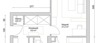 • 2 szoba, egymásból nyílnak (alaprajzi elrendezés a képek között).