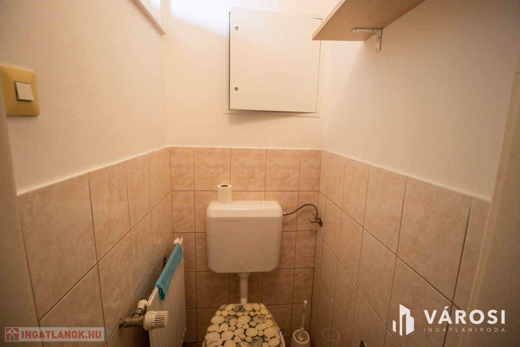 Az udvarra néző nappali + 2 szoba ablakai délkeleti fekvésűek; egyéb helyiségek konyha, spájz, közlekedő, fürdő külön wc, előszobában a bejárat mellett beépített gardrób, műanyag külső nyílászárók.