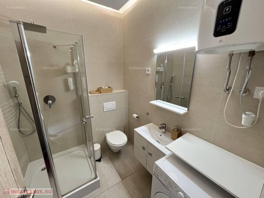 Kaposváron a belváros közelében 45 m2-es, igényesen kialakított és berendezett - azonnal költözhető - lakás kiadó. A lakásban előszoba-konyha-étkező-nappali, 1 szoba, fürdőszoba-zuhanyzó-wc helyiségek találhatóak. A lakás rezsije nagyon alacsony, a fűtése és a hűtése napelemmel üzemeltetett légkondícionálóval megoldott, a melegvizet intelligens villanbojler szolgáltatja. A lakást a tulajdonosa legfeljebb 2 felnőtt részére kívánja bérbe adni, a dohányzás és a kisállat tartása nem engedélyezett! A parkolás az épület előtti parkolóban ingyenesen lehetséges, a Kossuth tér gyalog 5 perc alatt kényelmes sétával elérhető. Bérleti díj: 220.000.- Ft/hó + 40.000.- Ft rezsi + 1 havi kaució