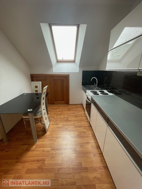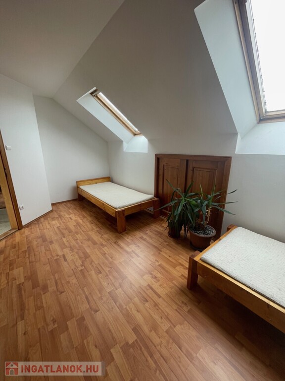 Nyíregyházán belváros közelében 60 nm-es, 2 szobás, félig bútorozott, fa hőszigetelt nyílászárókkal felszerelt, klíma fűtésű, tágas, világos 3.-ik emeleti lakás tetőtérben kiadó. Az ingatlan konyhabútora gépesített, hűtővel rendelkezik, mosógép azonban nem tartozik a lakáshoz. Az albérlet egy 6 lakásos téglafalazatú társasházban, belvároshoz közel található.