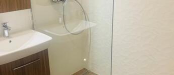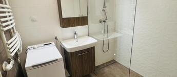 A burkolatok, szaniterek, igényes, modern arculatot adnak a lakásnak.