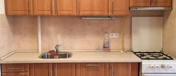 A lakás bútorozott: komplett konyhabútor sütővel, páraelszívóval, új hűtőszekrény, a szobában tágas modern szekrény polcokkal. A lépcsőház tiszta, rendezett állapotú.