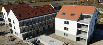 A földszint + 2 emelet + tetőtér kialakítású épületekben összesen 32 db különböző méretű lakás lesz elhelyezve.