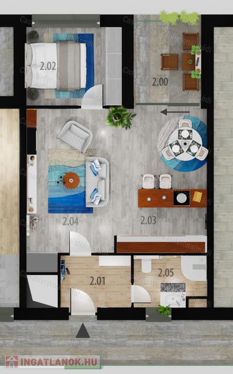 - 51,54 m2 lakótér + 6,96 m2 loggia