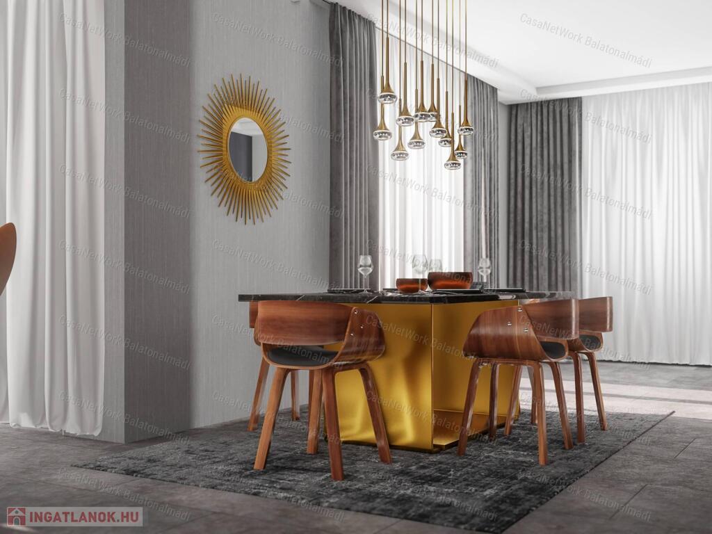 - az épület földszintje ad helyet a szintén eladásra kínált étteremnek és kávézónak, melyek központi elhelyezkedésüknek és színvonalas kivitelezésüknek köszönhetően a gasztronómiai élmények és a társasági élet meghatározó elemévé válhatnak Balatonalmádiban