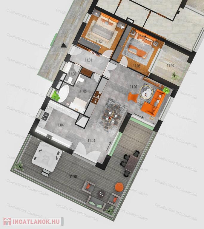 - óriási terasz, csodás panoráma, exkluzív környezet; a legfelső szint penthouse luxuslakása