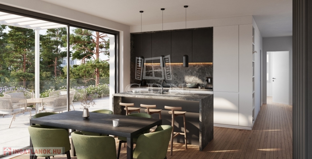 A LAKÁS a földszinten található. 51 nm lakótér, 19 nm terasz, kertkapcsolat. Amerikai konyhás nappali, hálószoba, közlekedő/gardrób, fürdőszoba, WC.