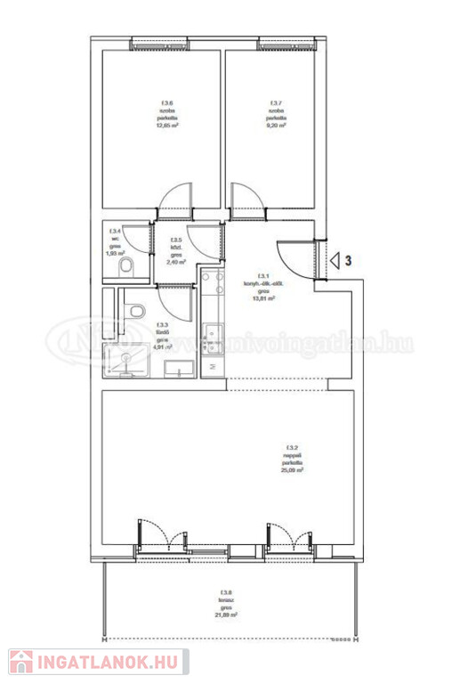 - alapterület: 69,99 m2 + 21,89 m2 terasz + 31,3 m2 kert,