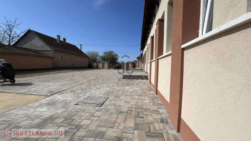 Belső, térkövezett parkolóhely az árban