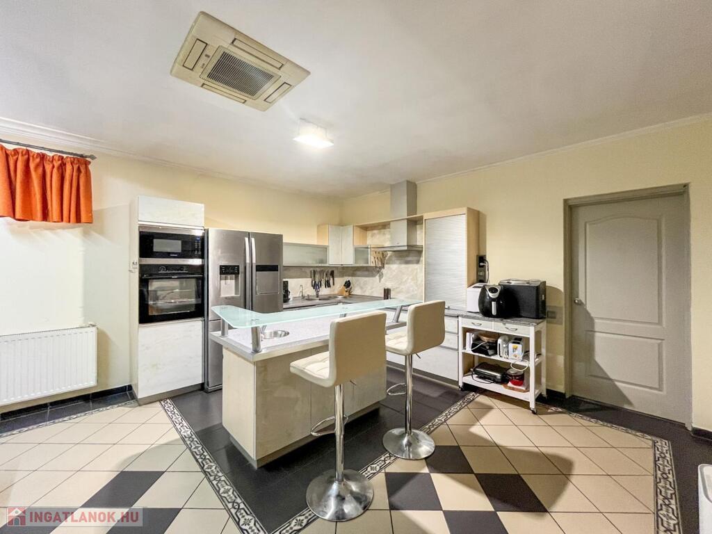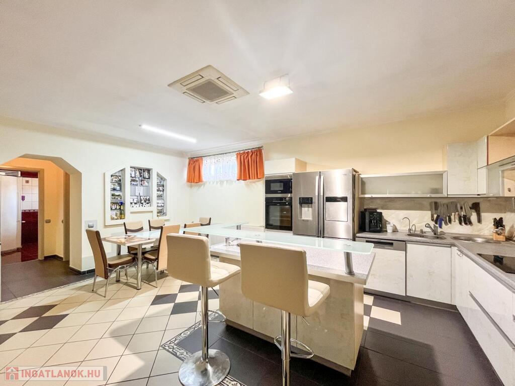 Letisztult, világos, kifejezetten nagy családokra vagy vendégfogadásra optimalizált tér. Modern gépesítés, hatalmas munkafelület, rengeteg tárolóhely. Itt az étkezés nem feladat – élmény.