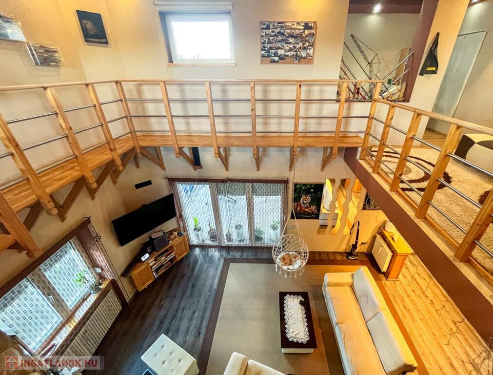 A nappali fölött egy NYITOTT GALÉRIA és egy különálló szoba található: