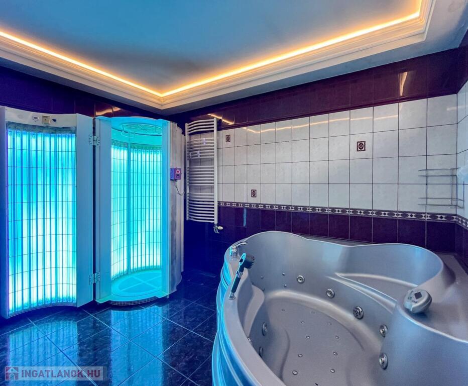 Igazi wellness-részleg: hidromasszázs + gőzfunkciós zuhanykabin, prémium kialakítás..