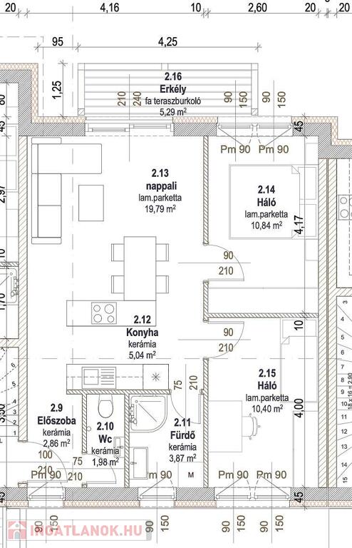 -Az alapterülete 54,79 nm. (amerikai konyhás nappali + 2 hálószoba)