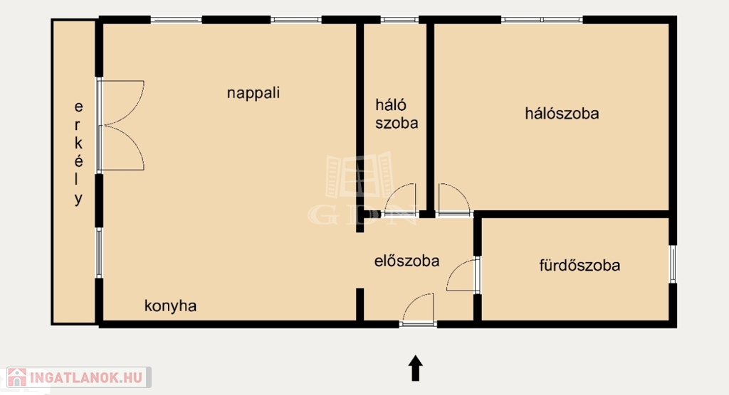 Amerikai konyhás nappali + 2 hálószoba
