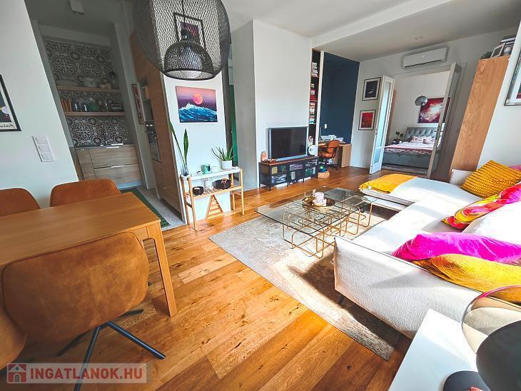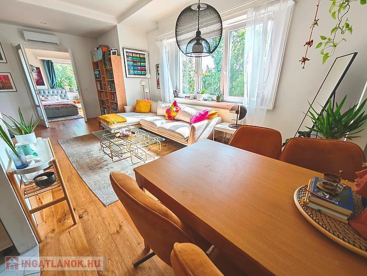 A Rózsakert Bevásárlóközpont közelében, jó közlekedéssel eladóvá vált egy 60nm-es, egyedi fűtéssel rendelkező, 2020 és 2022 között teljeskörűen felújított, DK-i fekvésű lakás, egy 5 lakásos társasházban. Elosztását tekintve egy amerikai konyhás nappali, egy háló erkély kapcsolattal, és egy fürdőszobából áll. A lakáshoz tartozik egy 5nm-es tároló.