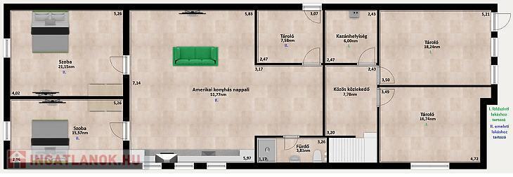 - Félszuterénben 74nm-es ablakos lakás, melyben jelenleg vállalkozás üzemel. Ez az ingatlan megközelíthető külön a kertből is, és a házból is. Ezenkívül egy 41nm-es több helyiségből álló ablakos, szellőztethető, fűtött és burkolt tároló található.