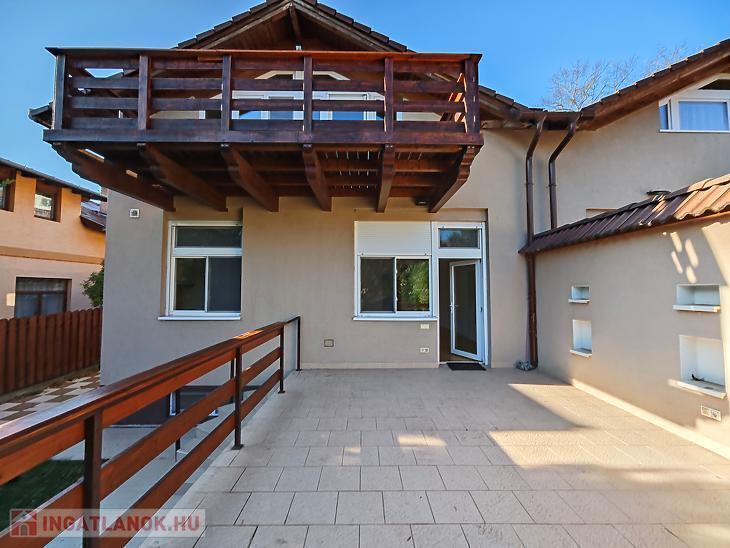 - Földszinten egy 105nm-es 3 szobás, étkezőkonyhás lakás, melyhez tartozik egy 23nm-es kertkapcsolatos terasz, illetve egy 15nm-es mini garzon. A lakás körüli kb 200nm-es kertet kizárólag ennek a lakásnak a tulajdonosa használja.