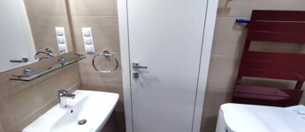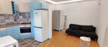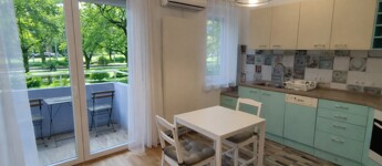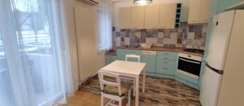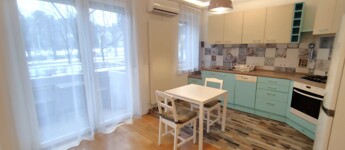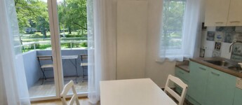The apartment was completely renovated in 2018. The sunlight floods in through the huge windows of the living room with American kitchen, and the balcony offers a nice view of the green surroundings. The new plastic windows are equipped with shutters and mosquito nets. The bedroom has a double bed and a built-in wardrobe.