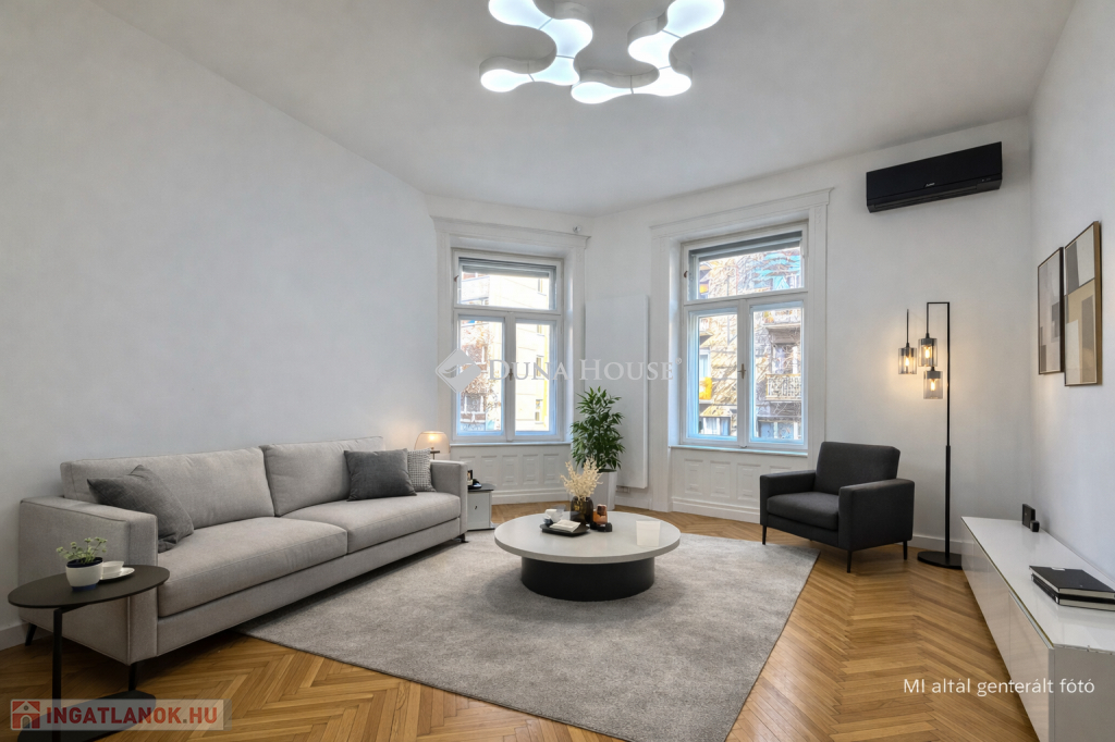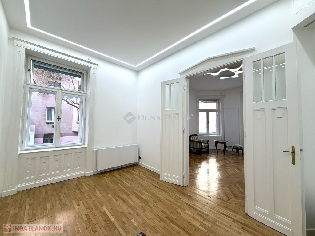 Tágas, polgári lakás a Lövőház utca sétáló részénA Lövőház utca sétáló része Buda egyik legismertebb és legkedveltebb városi környezete. Éttermek, kávézók, üzletek, a Mammut bevásárlóközpont és a Millenáris park néhány perc sétára találhatók mégis megmarad az utca sajátos, nyugodt hangulata.Ebben a környezetben kínálunk megvételre egy 100 m²-es, igényesen felújított lakást, amely egy liftes, téglaépítésű társasház félemeletén található. A 3 métert meghaladó belmagasság és a jól átgondolt térszervezés kellemes, tágas térérzetet ad az ingatlannak.A lakás elosztása praktikus és jól használható:32 m²-es amerikai konyhás nappali, prémium beépített gépekkelkét tágas hálószobaegy félszobadupla komfortos kialakításA műszaki tartalom és a felszereltség is igényes:légkondicionálásgázkazános fűtéstávirányítású alumínium redőnyökbiztonsági bejárati ajtófaliszéftávolról vezérelhető riasztó- és kamerarendszerigényes belsőépítészeti megoldásokParkolási lehetőség a közelben biztosított: a Millenáris Avantgarde Irodaházban őrzött teremgarázs hely bérelhető, 024 órás portaszolgálattal.Ha Buda egyik legjobb utcájában keres elegáns városi otthont, akkor ez a lakás egy olyan lehetőség, amit érdemes személyesen is megnézni.