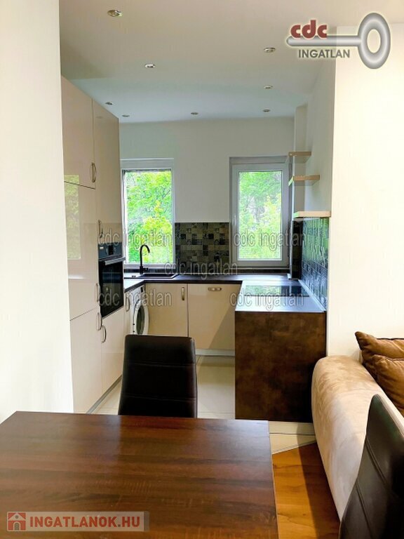Megvételre kínálunk a II. kerületben, a Hárshegyen egy 70 m2-es, teljes körűen felújított, kelet-nyugati fekvésű, erkélyes lakást. Az ingatlan egyedik emeleti, három különnyíló szobája van, hihetetlenül világos, tágas, barátságos otthon. A konyha rendkívül praktikus, rengeteg tárolófelülettel rendelkezik, teljesen gépesített: mosógép, mosogatógép, sütő, indukciós főzőlap, hűtőszekrény és fagyasztó tartozik hozzá. A 8 m2-es teraszról gyönyörű kilátás nyílik az Erzsébet kilátóra és a környező erdőre. Minden szobából zöldre látni, a nappali nyugati fekvésű, a hatalmas háló keleti. A lakás házközponti fűtéses. A háztetőn lévő 300 m2-es, közös használatú teraszról mesés körpanoráma nyílik a városra és a természetre. A házhoz tartozik egy közös kert, parkolni ingyenesen az épület előtti parkolóban lehet. A 22-es, 222-es, 22A buszok a közelben állnak meg.