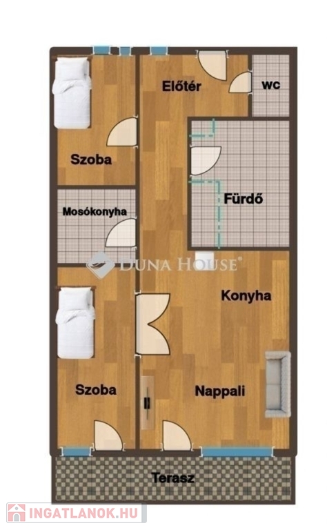 - Nappali + 2 külön nyíló szoba