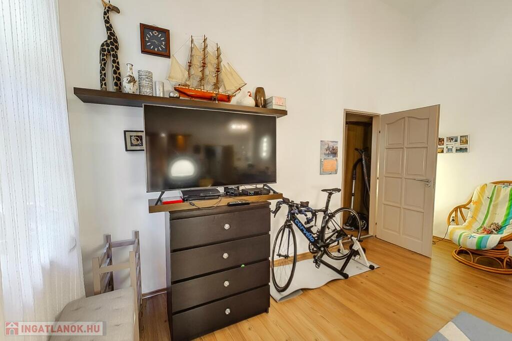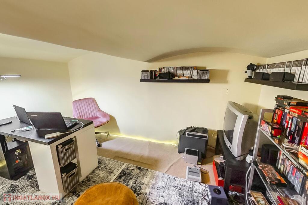 Az előszobában hatalmas gardróbszekrény van, de további tárolási lehetőséget szolgál a lakáshoz tartozó pince ami száraz nem dohos.