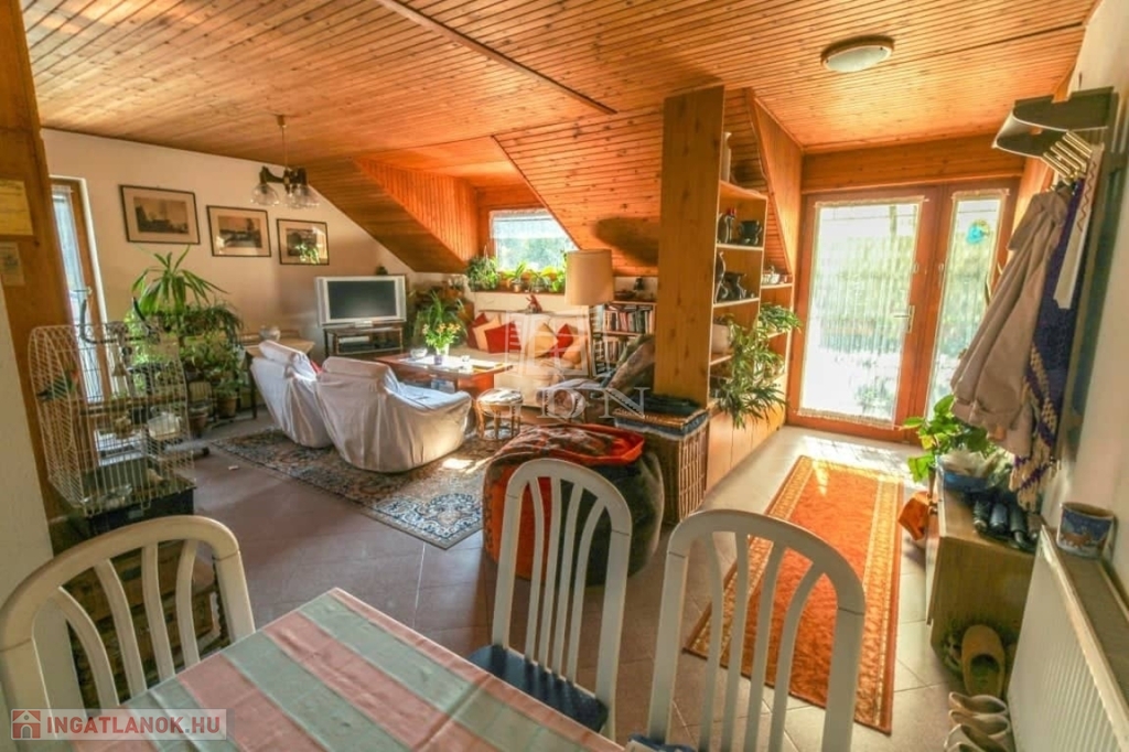 Felette külön lépcsőn megközelíthető egy 55nm-es lakás, mely amerika konyhás nappali+hálószobas fürdőszobas.