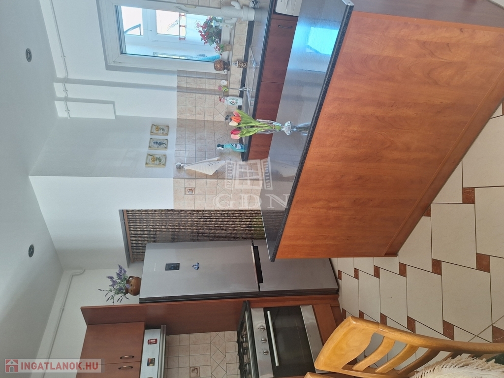 A 75nm-es lakás a ház 1.emeletén helyezkedik el, amerikai konyhás nappaliból 2db 18 és 8nm-es hálóból fürdőszobából 2WC ből áll a padló és cirkófűtéssel és 50nm teraszkapcsolatból, kilátással a kertre.