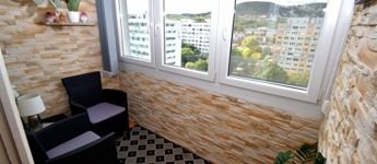 A loggia ideális helyszíne lehet a reggeli kávénak vagy a nap végén egy kellemes pihenésnek, miközben a város látványa tárul elénk.