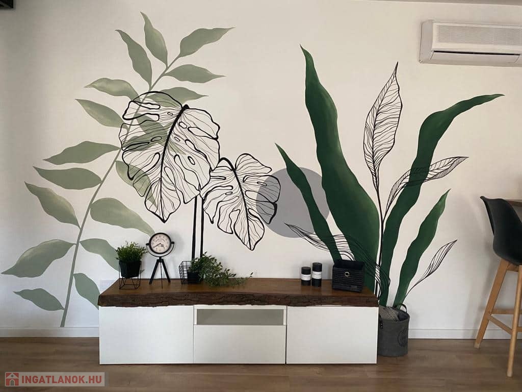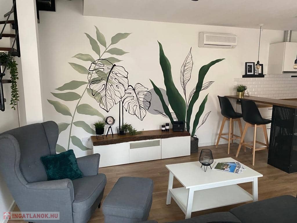 A lakás teljesen gépesített: mosógép, mosogatógép, hűtő, valamint két klíma (lent és fent).