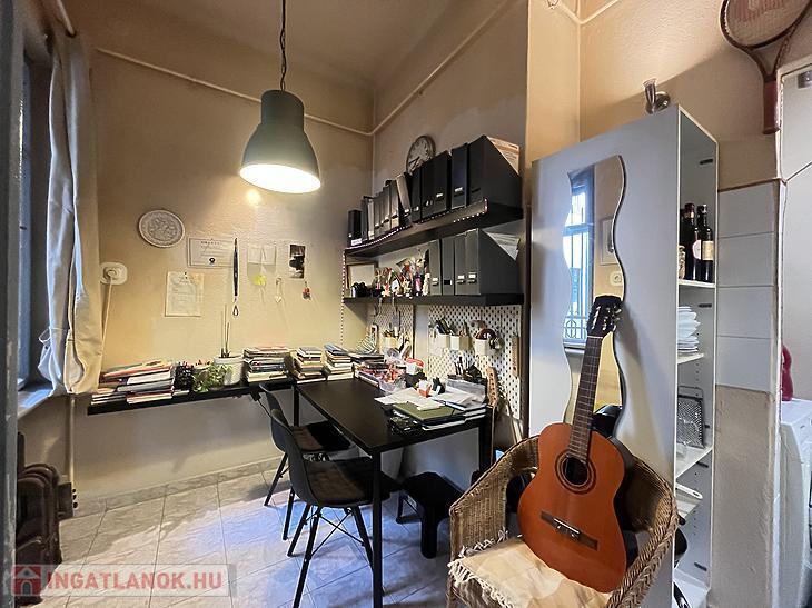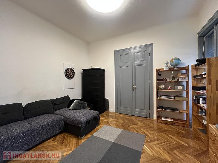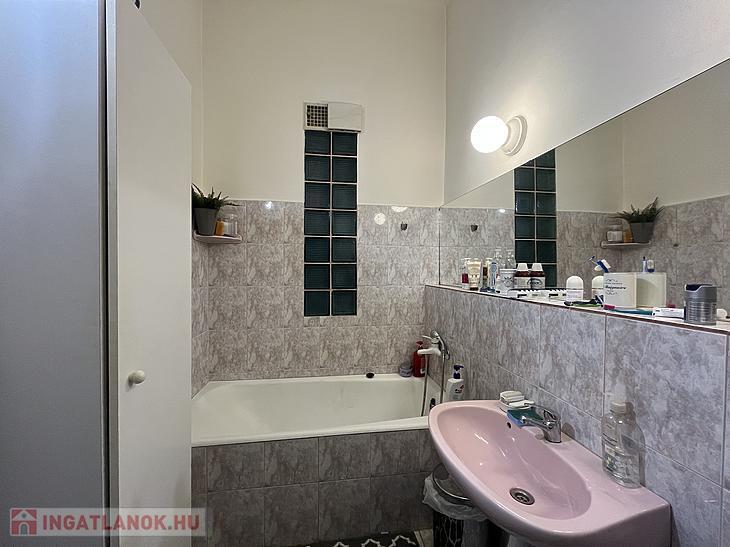A szoba faparkettás, a vizeshelyiségek pedig járólaposak.