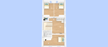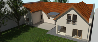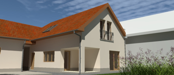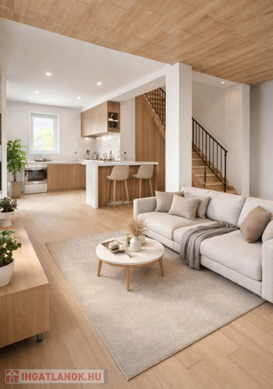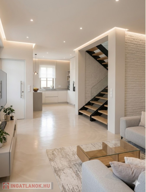 Békásmegyer -Ófalu hangulatos műemlék jellegű környékén eladó egy alapoktól korszerűen újjáépített kertkapcsolatos lakás kétlakásos házban .