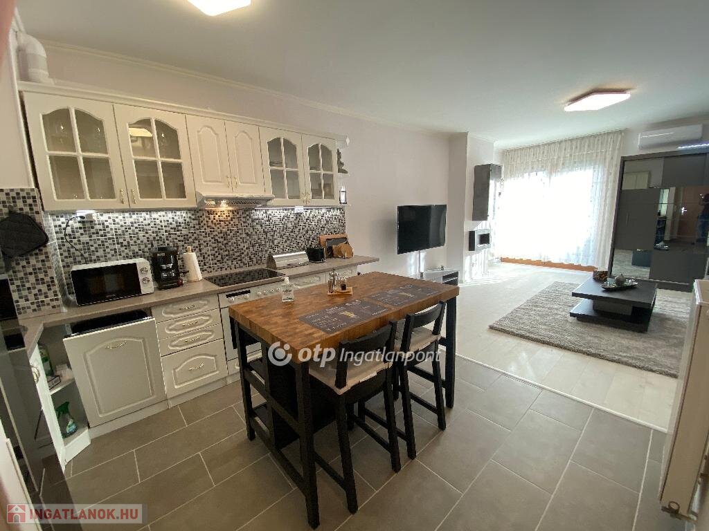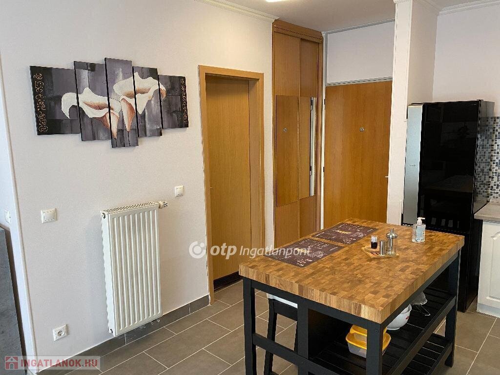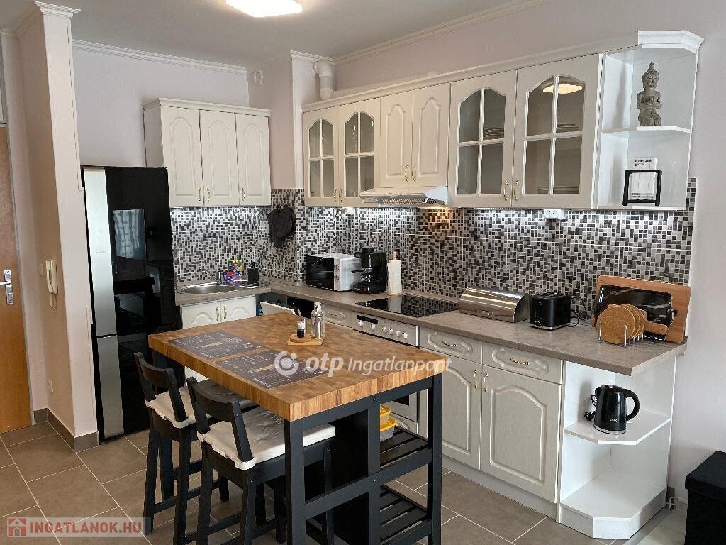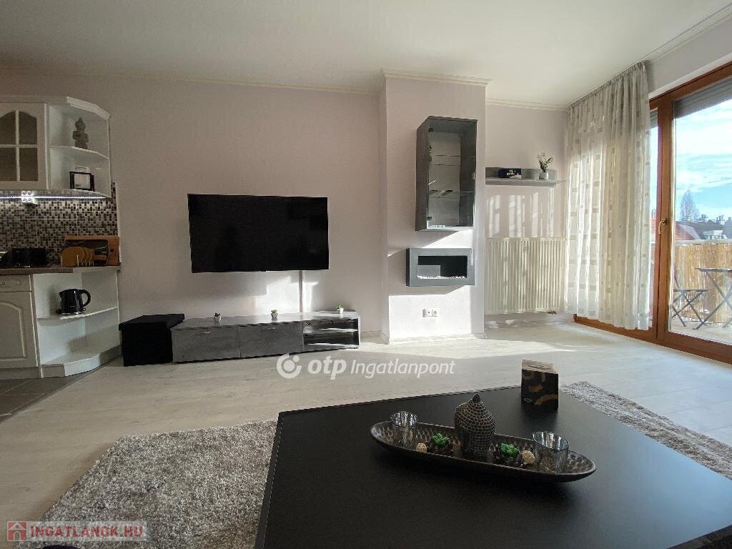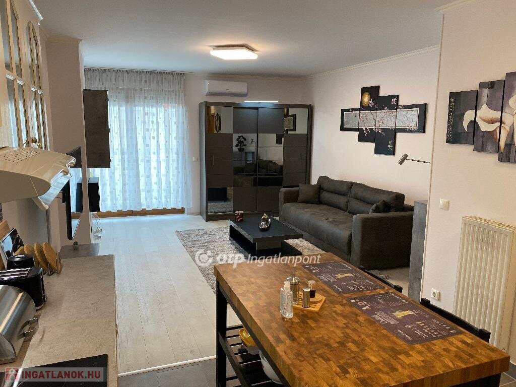 A lakás egy légterű, garzon tágas amerikai konyhás nappalival rendelkezik, melyet praktikus, átgondolt kialakítás jellemez. A konyha kiváló méretű és teljesen felszerelt, a burkolatok minőségiek, a háromrétegű fa nyílászárók pedig kiváló hő- és hangszigetelést biztosítanak. A hűtő-fűtő klímaberendezés egész évben kellemes hőmérsékletről gondoskodik. A lakás rendkívül világos, napfényes, erkélye pedig csendes mellékutcára néz, így ideális pihenésre.