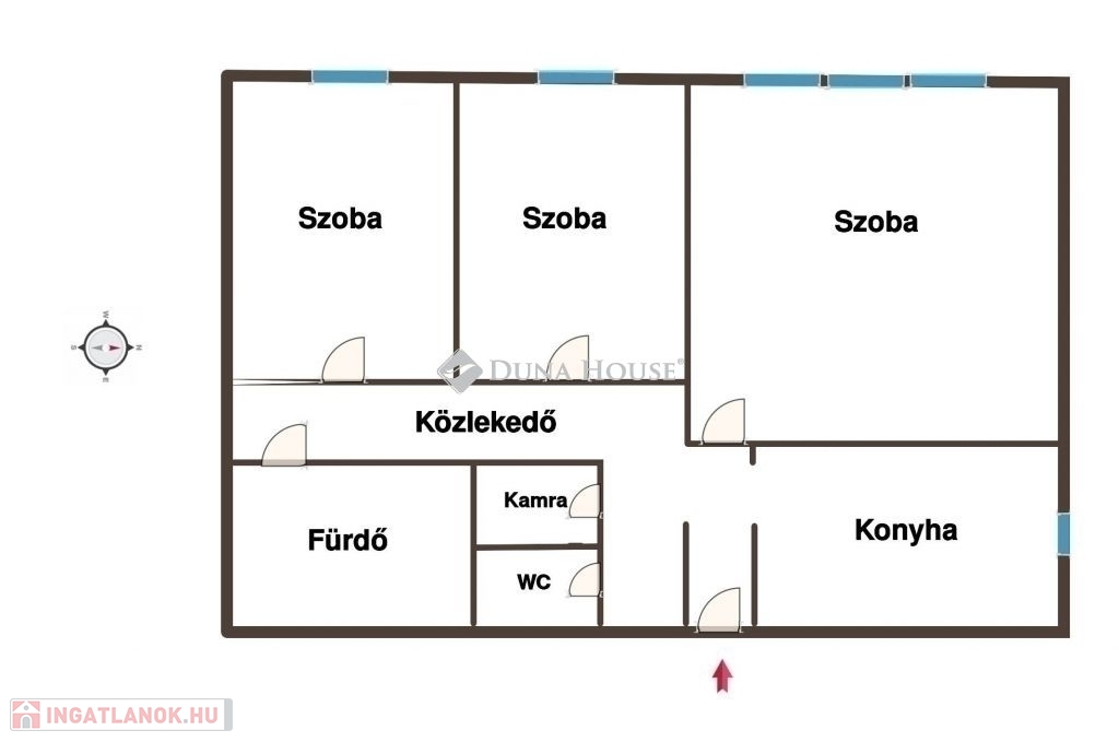Belépve a lakásba, rögtön észrevehetjük a jó fényviszonyokat, amelyek optimális nappali környezetet biztosítanak. A három külön nyíló szobának köszönhetően akár nagyobb családok számára is kényelmes életet ígér. A konyha világos, sok hasonló lakás esetében a válaszfal kivételével nappalis konyha alakítható ki a felújítás részeként.