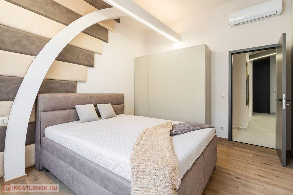 A lakás 2025 májusában esett át teljes körű felújításon, melyet belsőépítész tervezett és prémium anyagok, egyedi formák, íves falak és különleges felületek tesznek igazán különlegessé. Az ingatlan hangulata egyszerre modern, elegáns és otthonos, minden részletében a magas színvonalú kialakítás és a kifinomult ízlés tükröződik.