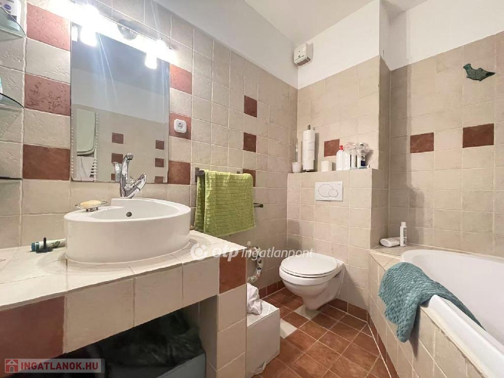 Az előszobából nyílik egy kisebb, zuhanyzós fürdőszoba, mellette külön helyiségben található a WC.