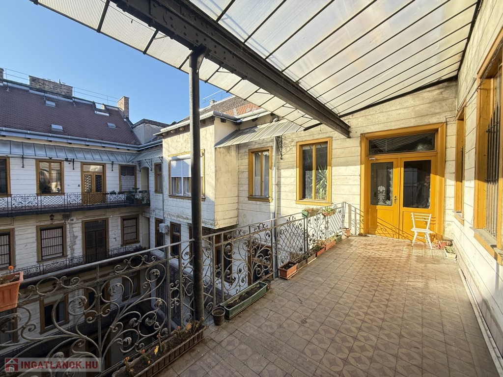 Belső-Ferencváros kiemelt részén, a Lónyay utcában, kínálunk megvételre egy 165 m²-es, nagy belmagasságú, 5 szobás, teljes felújítást igénylő nagypolgári lakást, egy századfordulón épült, liftes palotaház negyedik emeletén. Az ingatlan felett csak a padlástér található, így a lakás világos és napfényes.