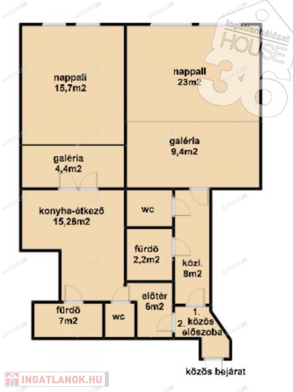 Az ingatlan természetesen vissza is alakítható, de így egy közös bejárattal és egy 4 m2 előtérrel 2 külön bejáratú önálló életteret kaptunk.
