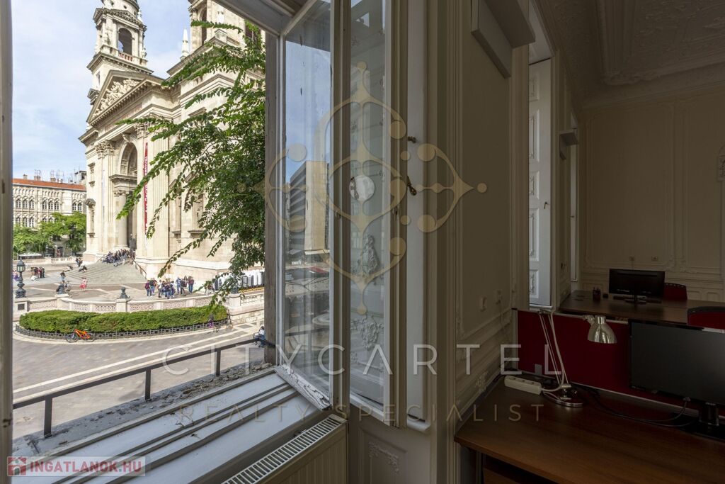 Budapest egyik legpatinásabb részén, az V. kerület szívében, a Hercegprímás utcában, közvetlenül a Szent István Bazilikára néző, elegáns liftes épületben páratlan adottságokkal rendelkező, 299 nm-es, 6 szobás, nagy belmagasságú saroklakás.