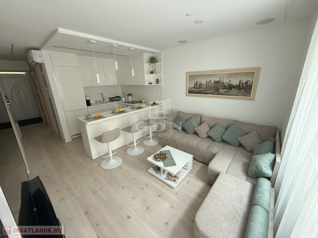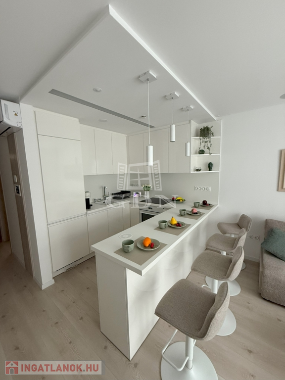Kényelmes hálószoba és egy tágas, amerikai konyhás nappali ad teret a közös pillanatoknak, vendégek fogadásának vagy a családi együttléthez.