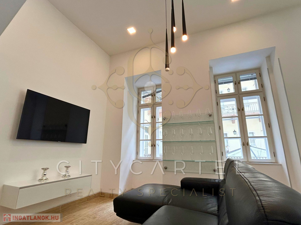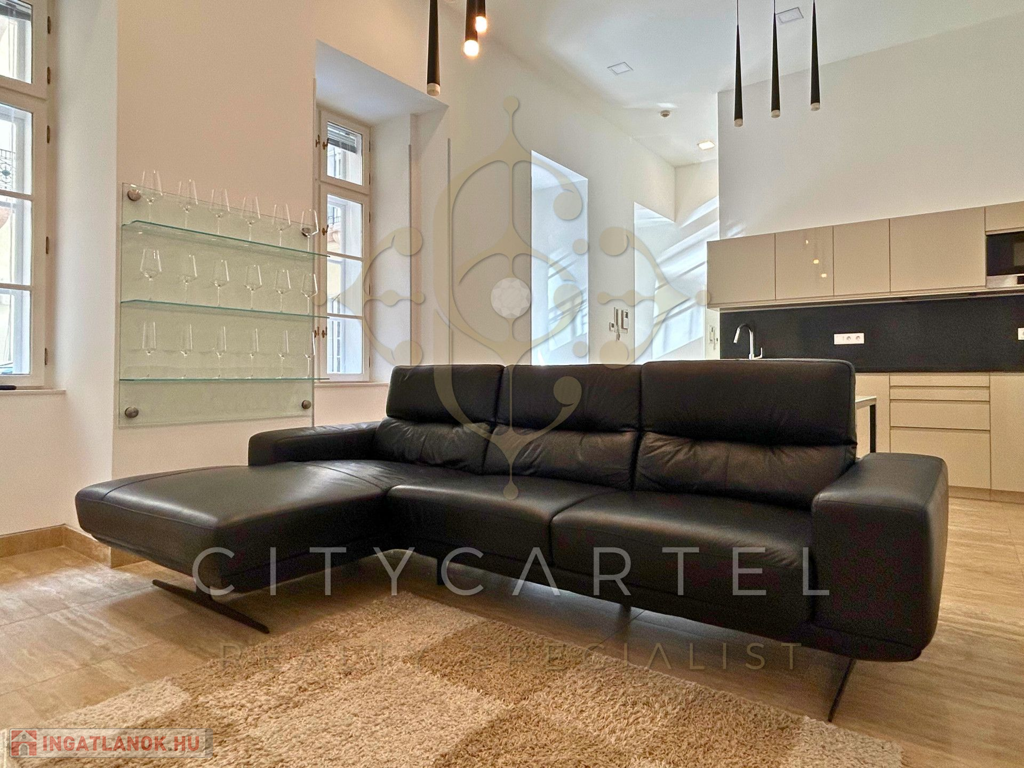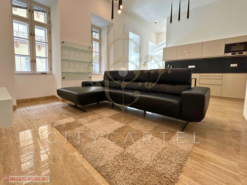 Az V. kerületben, a BELVÁROS SZÍVÉBEN egyik EXKLUZÍV apartmanházában egy 76 nm-es, belső kétszintes, amerikai konyhás nappali + 2 hálószobás kiváló elosztású 1. emeleti lakás, liftes épületben ELADÓ vagy BÉRBEADÓ.