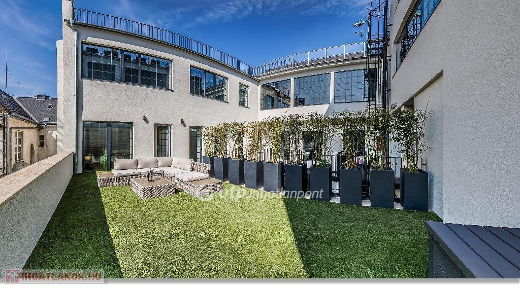 Tökéletes lokáció, tágas, világos terek és nagy belmagasságok, industrial stílus jellemzi a lakásokat. A hirdetésben szereplő lakás helyiségei: amerikai konyhás nappali, 1 hálószoba, 1 hálófülke, 2 fürdőszoba, gardrób, közlekedő és egy 41 m2-es terasz kilátással a Gellért-hegyre. A nappali a Múzeum körútra néz, padlótól a mennyezetig érő 5 méter széles ablakfelülettel.