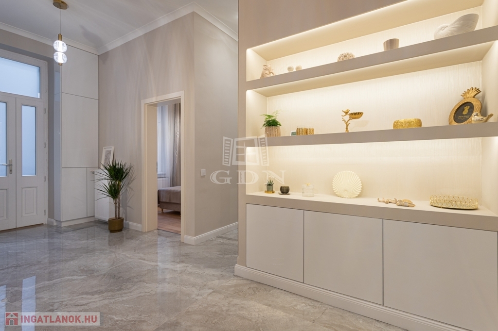 A lakás teljes mértékben felújított. Korszerű gépészettel, esztétikus, prémium minőségű burkolatok és anyagok felhasználásával készült.