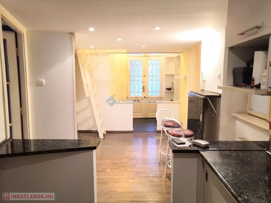 V. kerületben, a Nyugati pályaudvartól karnyújtásnyira, kívül-belül szép állapotú, liftes polgári társasház 1. emeletén eladó egy csendes utcára néző, 51m2-es, dupla galériás (a galéria területe nincs beleszámolva az 51m2-be, ezekkel együtt 82m2 terület áll rendelkezésre), cirkófűtéses, tágas tereket kínáló, jó állapotú lakás.