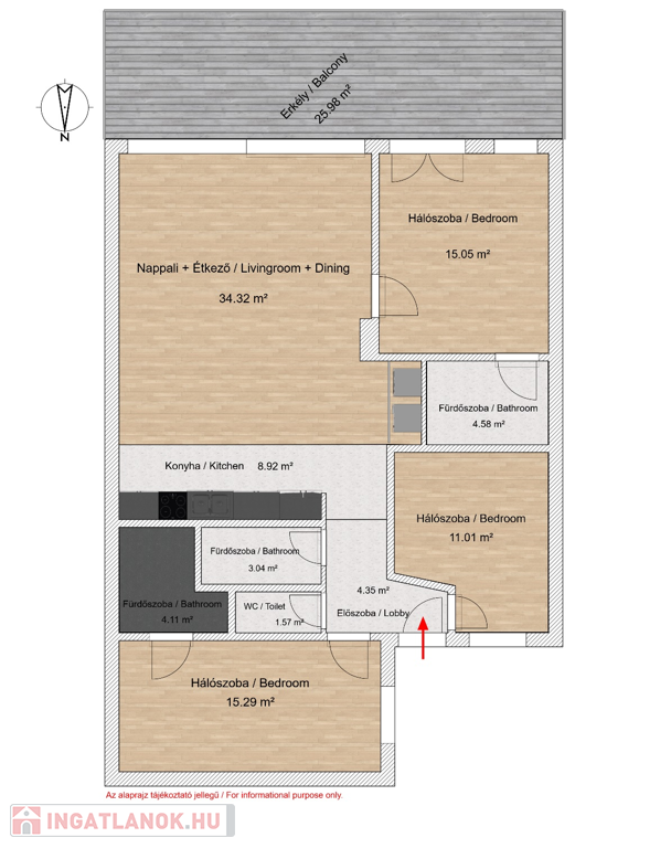 3 fürdőszoba (mindegyik hálószobához saját fürdő tartozik)