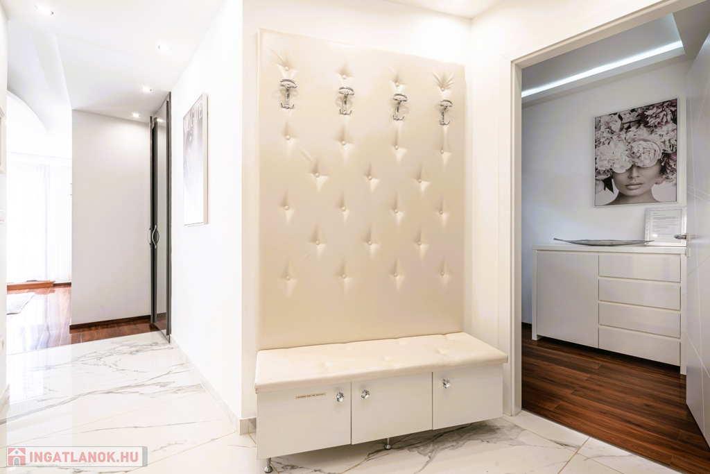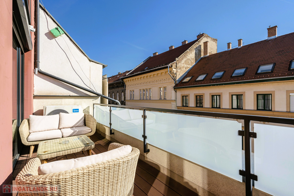 Eladásra kínálunk egy napfényes, tökéletes elrendezésű, luxus penthouse lakást egy gyönyörűen felújított, liftes társasházban. Az ingatlan a 2021-es szintráépítéskor épült, ekkor az egész lépcsőház és lift is megújult.