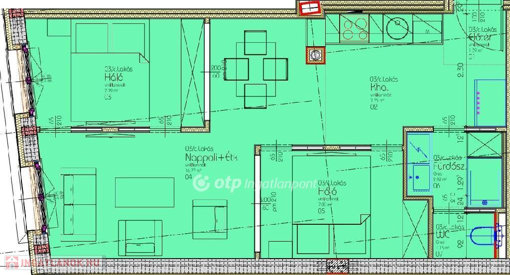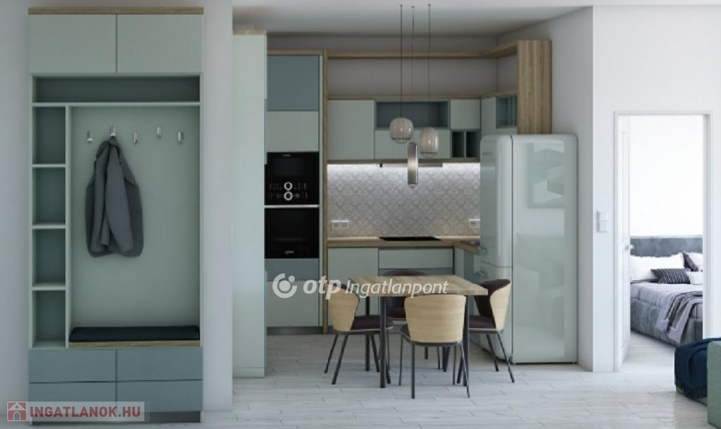 Eladó egy 48 nm-es, 1+2 félszobás, új építésű lakás a társasház második emeletén.