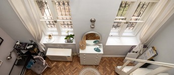 A lakás belmagassága 4,6 méter, mely különleges tágasságérzetet ad, amitől a lakás igazán elegáns és levegős. A nagy belmagasságnak köszönhetően sikerült egy 11 nm-es állógalériat kialakítani, ahol kényelmesen elfér egy franciágy és egy szekrény.