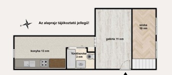 - A szobában klasszikus parkettaburkolat található, míg a konyhában vinyl padló.