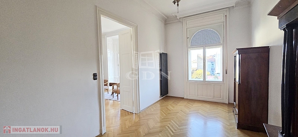 Ablakai utcára néznek, rendkívül világos. A 91 m2-es otthon jelenleg két szobás, igény szerint akár három szobássá is átalakítható. Esztétikai és műszaki felújítása három éve történt meg, a szobákban igényes parketta burkolat található.